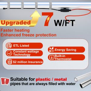 HEATIT Pipe Heating Cable with Thermostat Electric Heating Cable Automatic Heat Tape Pipe Freeze Protected Heated Cable 120V