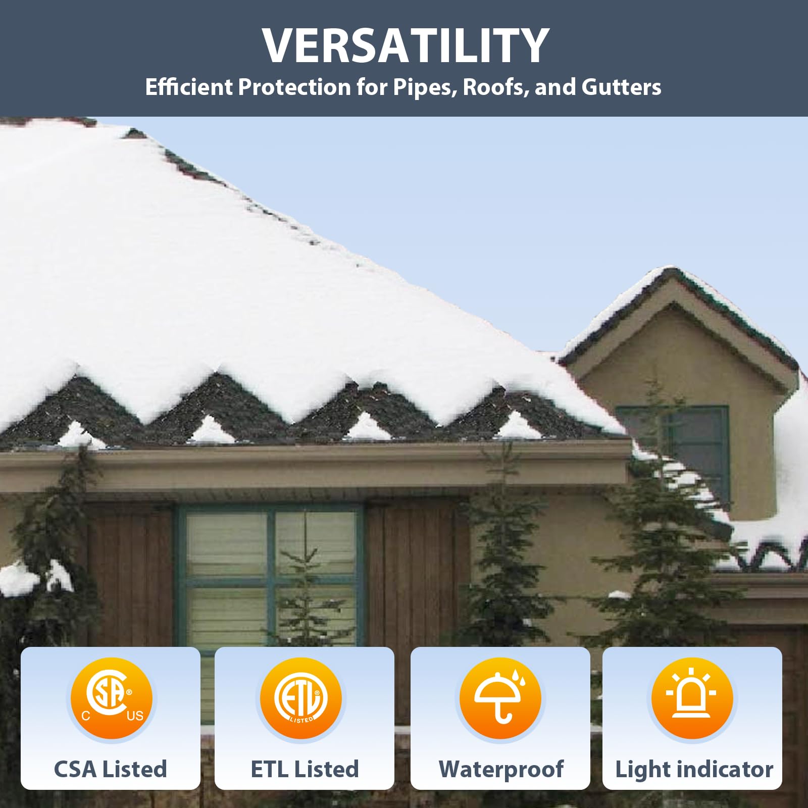 HEATIT 8JHSF Roof and Gutters Heating Cable with 10ft Lighted Plug Heavy-Duty Heat Tape, 120V 8W/ft