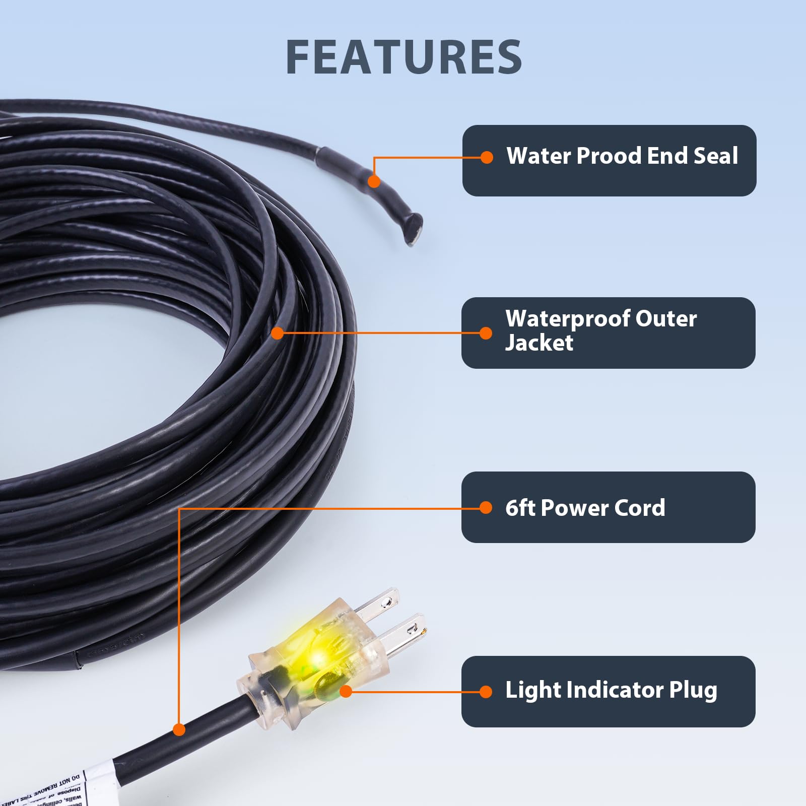HEATIT 8JHSF1 Heat Tape for Water Pipes Roof and Gutters Heating Cable with 10ft Lighted Plug