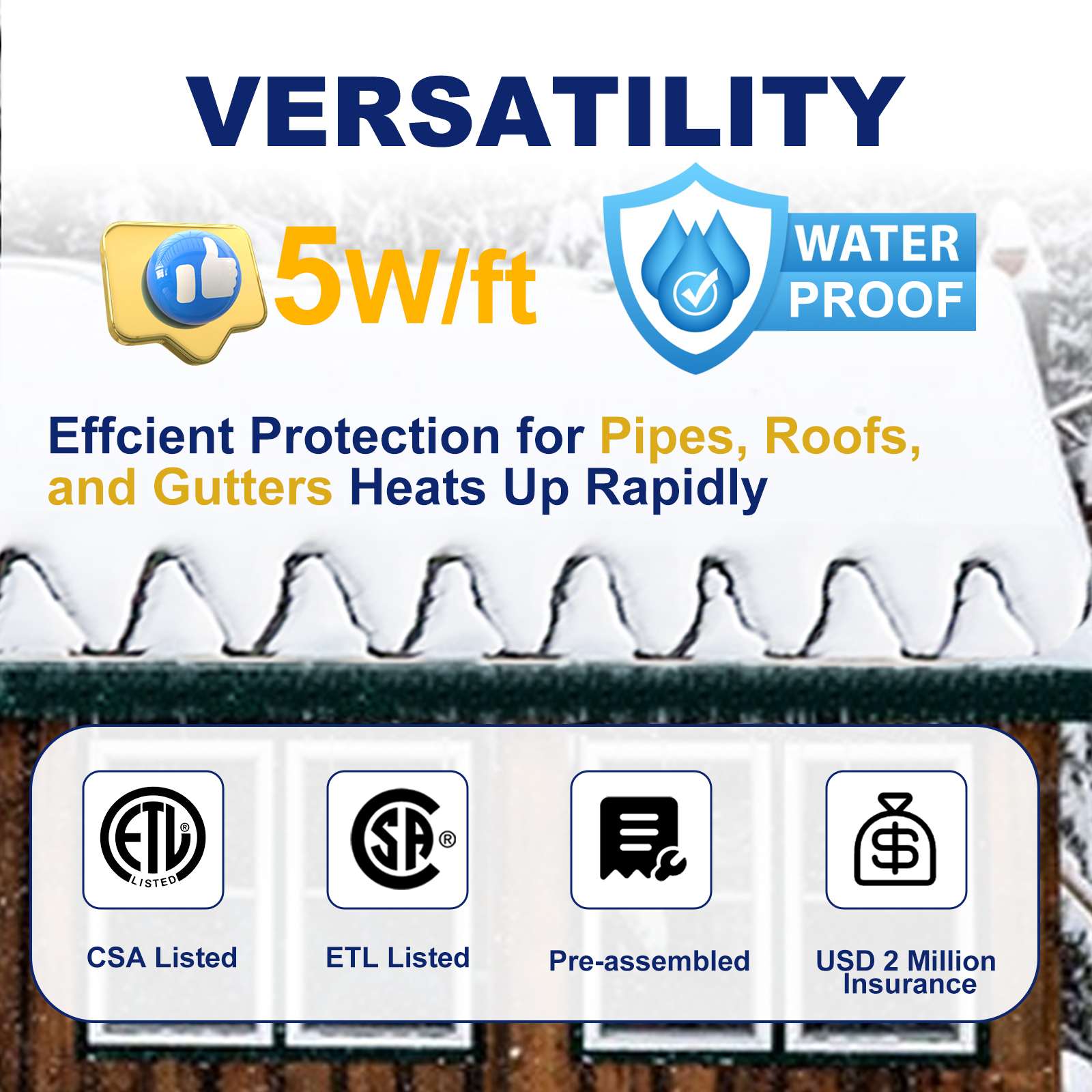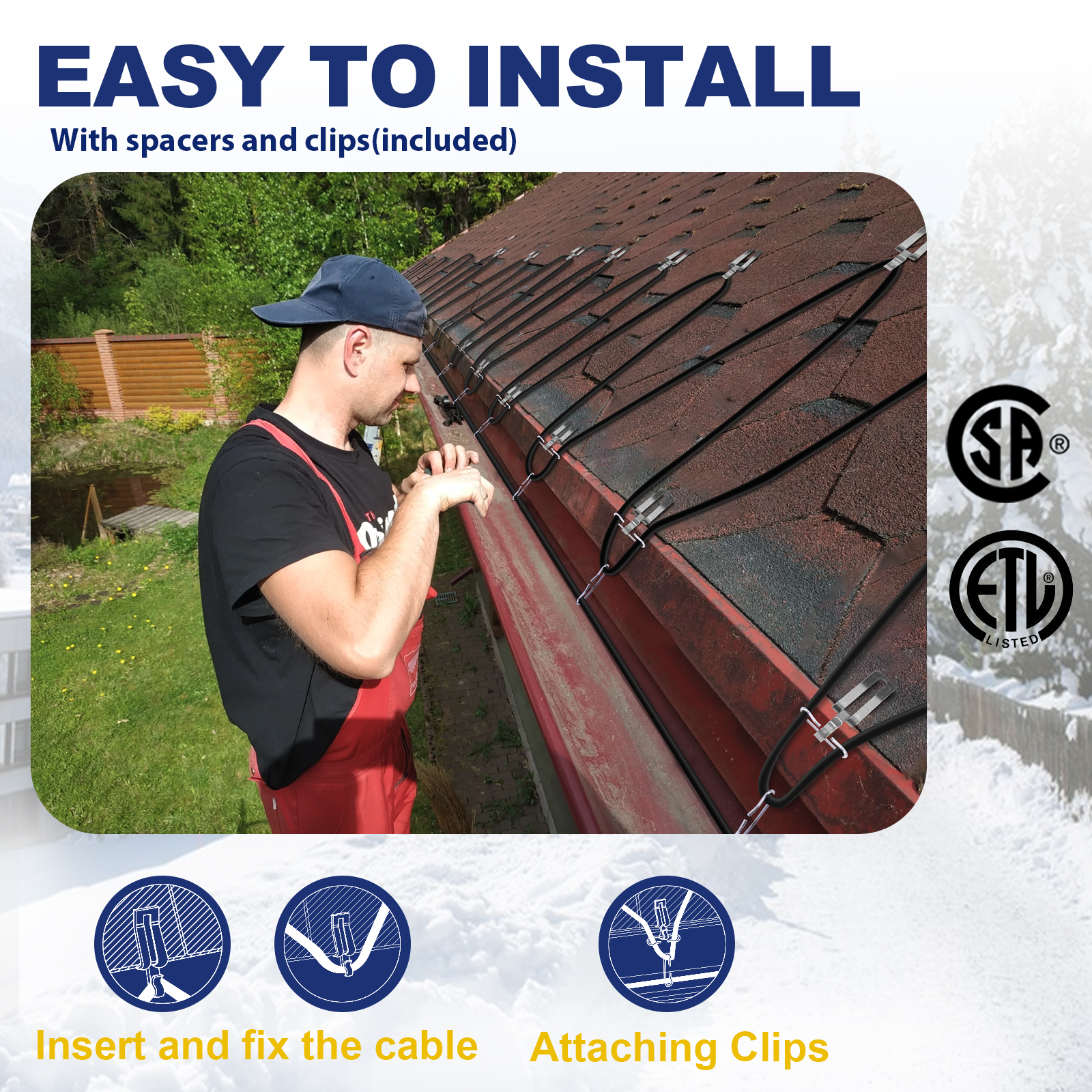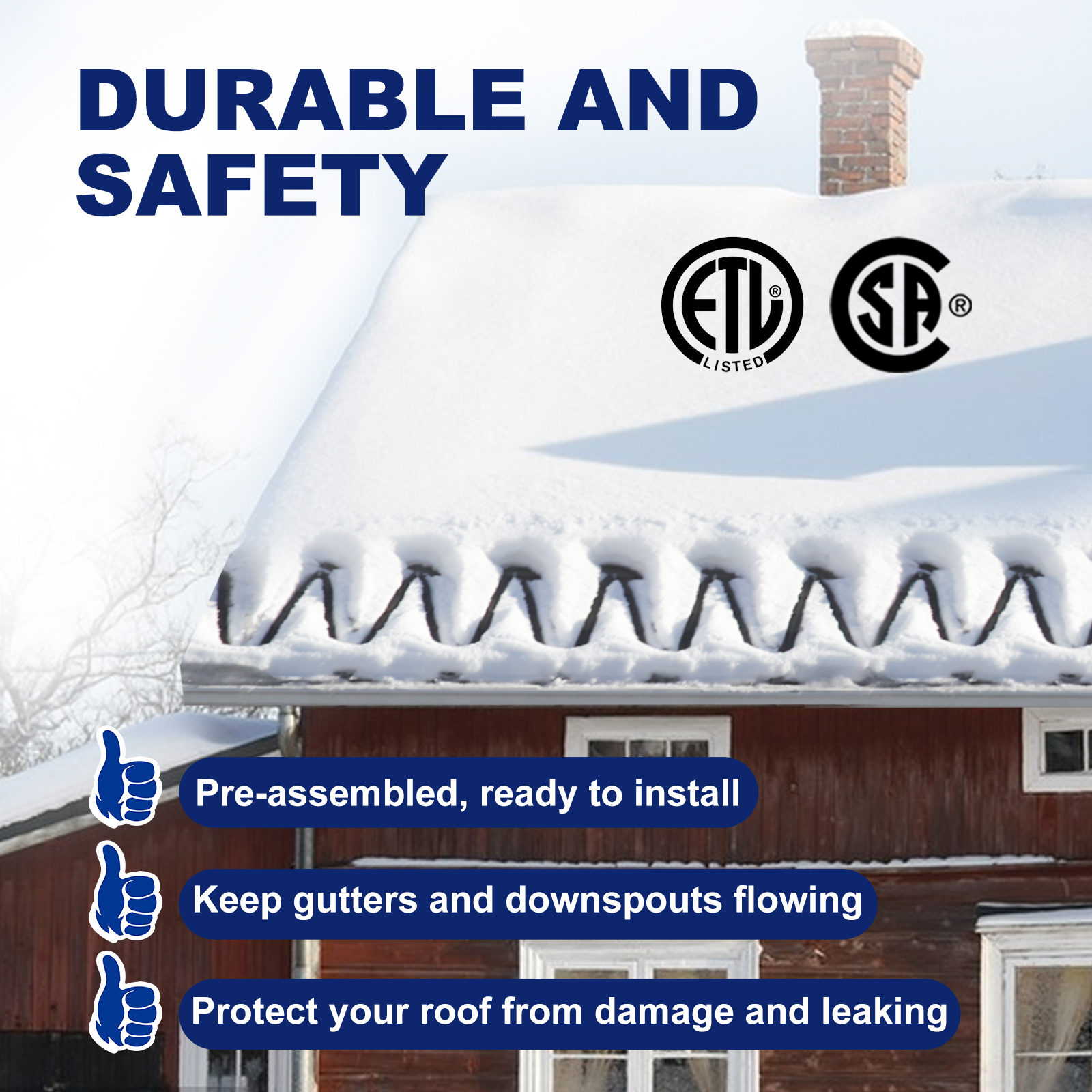 - 【Effective Ice & Snow Melting】 Designed to Prevent Ice Dams from Forming on Roofs, Gutters, and Downspouts. Protect Your Roof from Damage and Ensure Water Flows Freely Through Gutters and Downspouts.