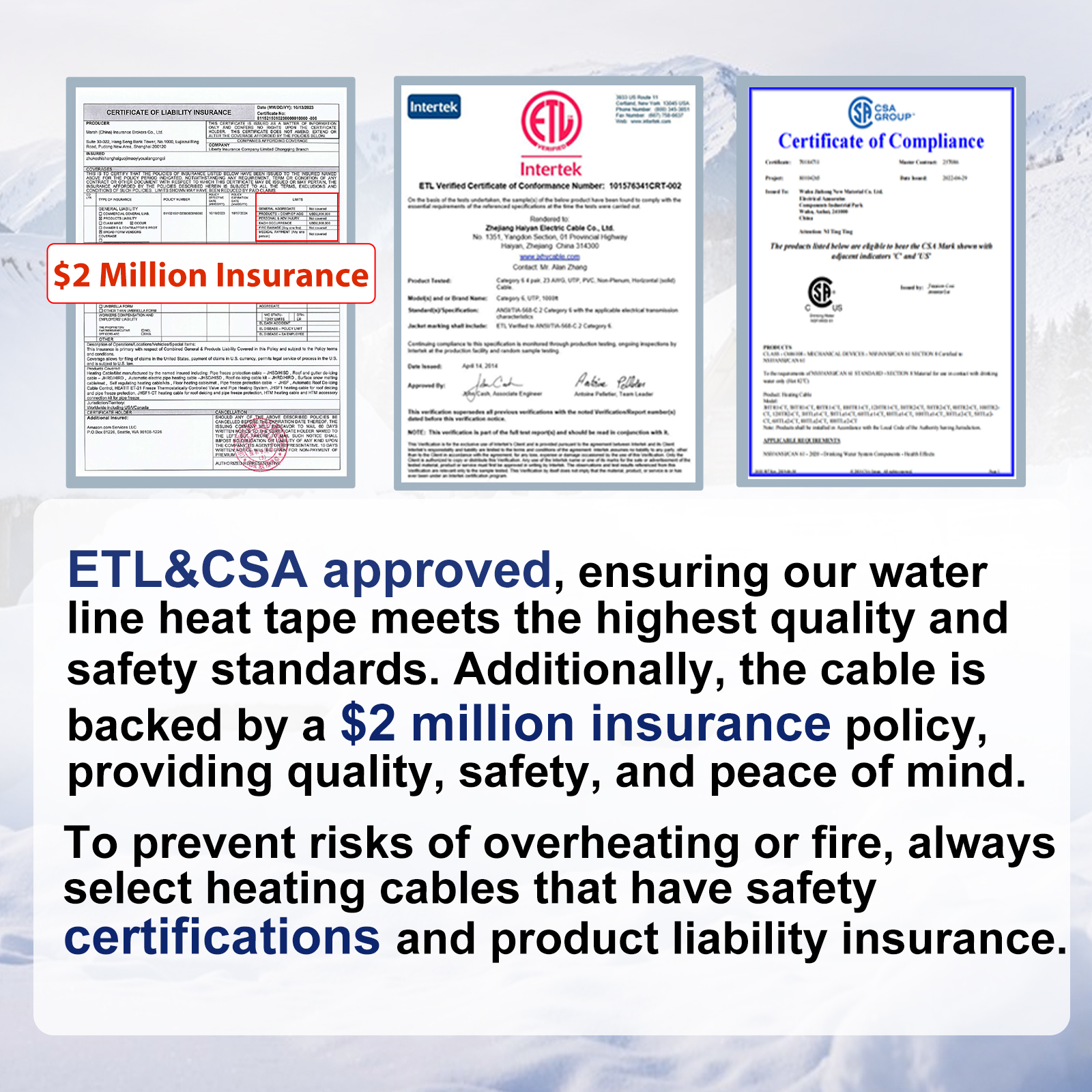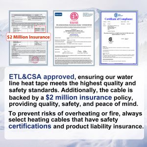 - 【ETL & CSA Certified for Superior Safety】Our constant wattage heating cable is fully ETL and CSA certified, meeting the highest safety standards across North America. The plug is also UL certified for added protection. Unlike products with only partial certification (e.g., a UL-certified plug but uncertified cable), our cable undergoes comprehensive testing, ensuring complete safety assurance and exceptional performance.