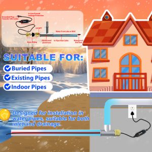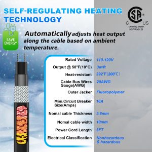 - [Smart Self-Regulating Heating for Efficiency & Safety] The advanced self-regulating technology automatically adjusts heat output based on ambient temperature, preventing overheating while optimizing energy use. This reduces utility costs while ensuring effective freeze protection.