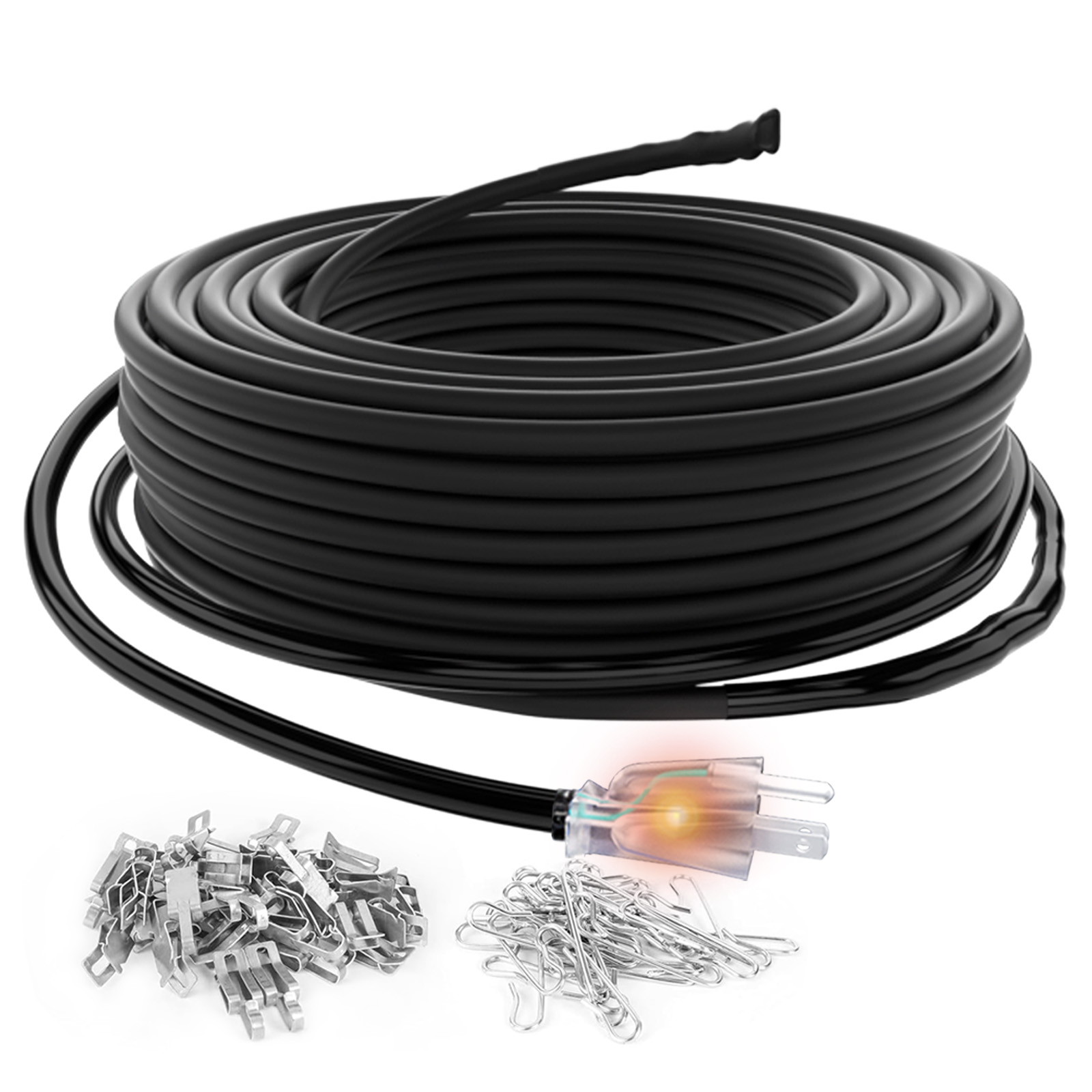 - 【Roof deicing application】HEATIT JHSF1 was designed to prevent the ice dam formation not to melt the ice dams which were already formed. Please turn on the cable at the beginning of snowing. Can be used on flat roofs, metal roofs, asphalt roofs, rubber roofs, slate roofs, stone roofs, metal roofs, ceramic roofs, composite (tar and gravel) roofs, and so on. Rated 10W/ft at 32°F (0°C) for roof deicing. For roof deicing applications, you may need to buy clips and hangers separately.