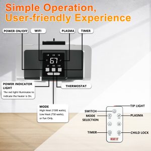 Be the first to review “HEATIT Space Heater with Remote for Indoor, Digital Display with Thermostat,Containing Plasma & Ozone, 1-12H Timer,1500W/750W, Electric Space Heater for Office, Bedroom,10.6″Dx7.0″W x 11.8″H” Cancel reply