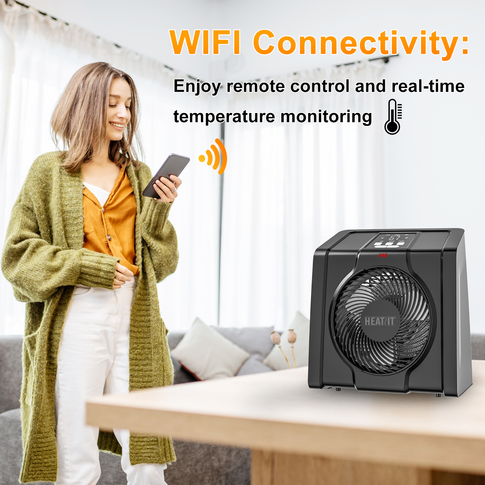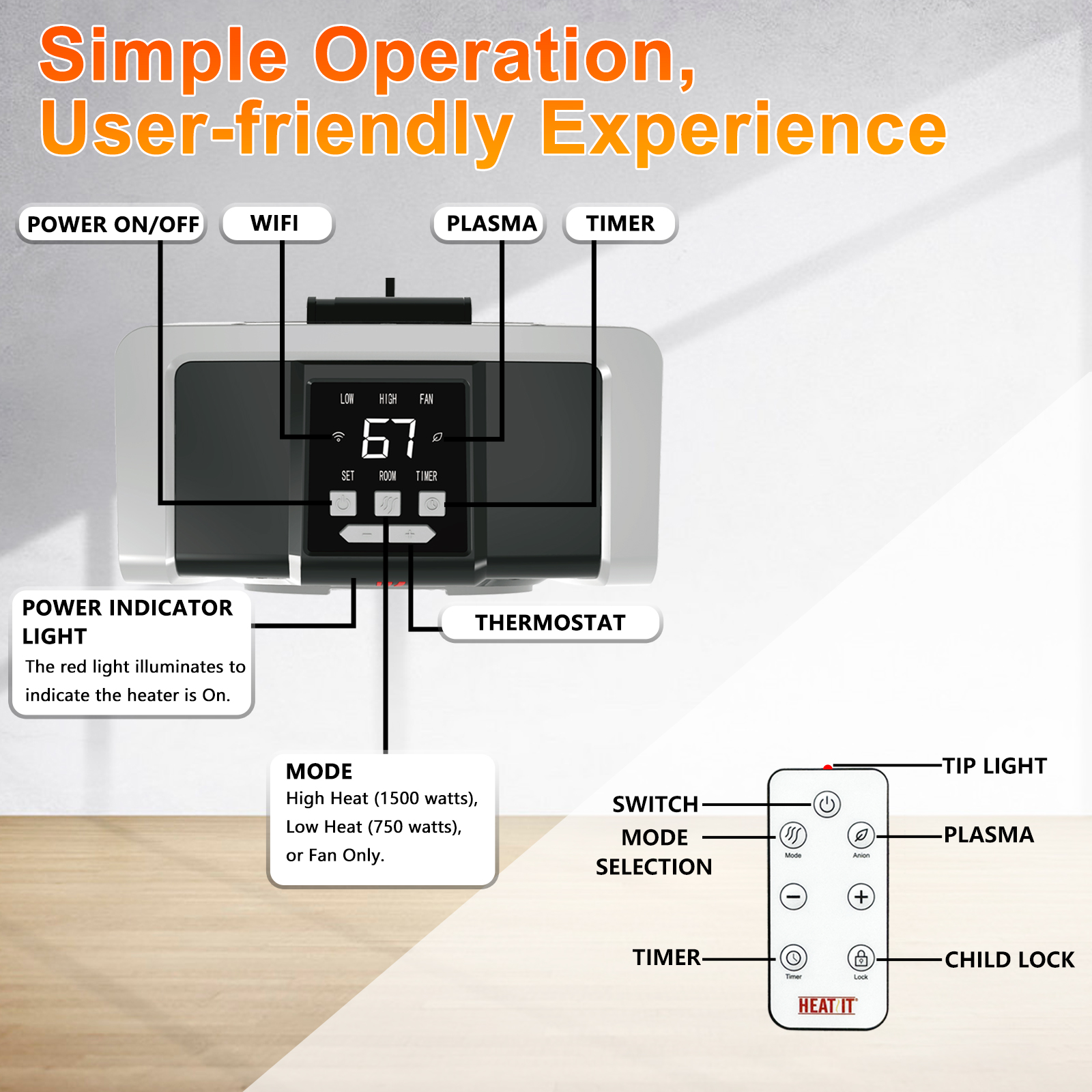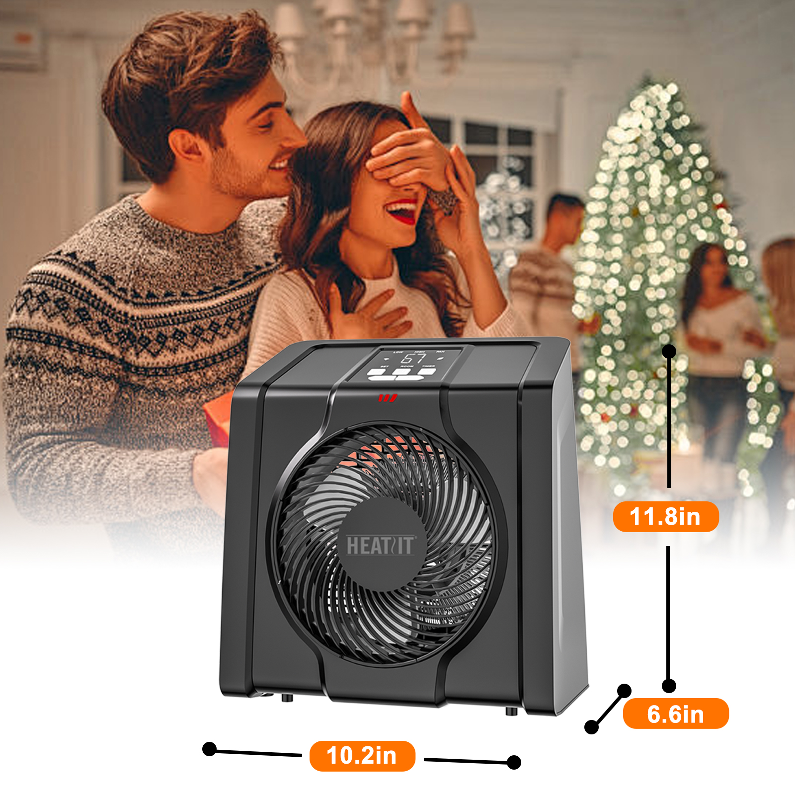 HEATIT Space Heater with Remote for Indoor, Digital Display with Thermostat,Containing Plasma & Ozone, 1-12H Timer,1500W/750W, Electric Space Heater for Office, Bedroom,10.6″Dx7.0″W x 11.8″H